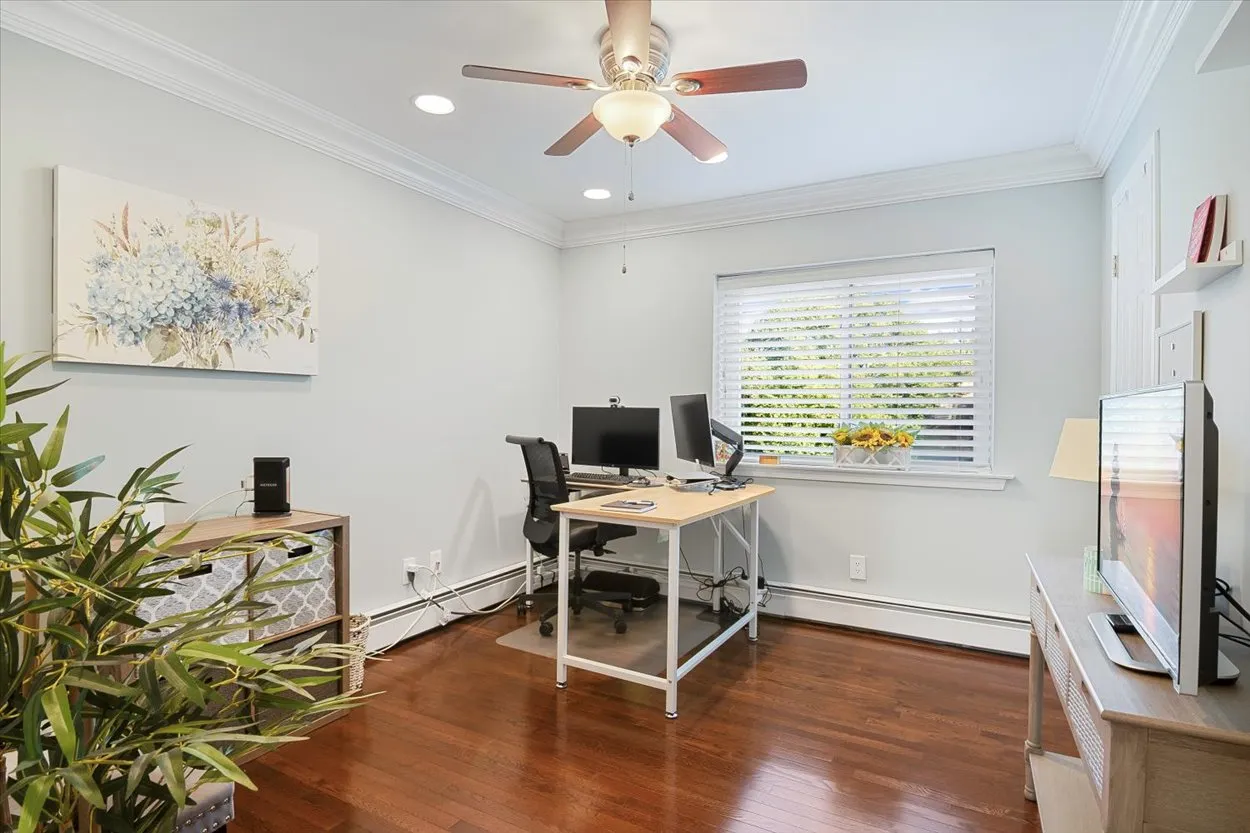 Recent updates bring peace of mind: Carrier central air and Navien tankless boiler (both 7 years old), plus a new 40-gallon water heater in 2024. Baths and powder room have also been tastefully renovated.