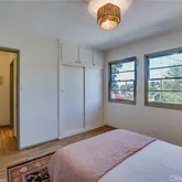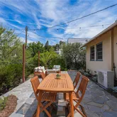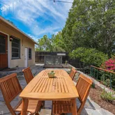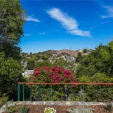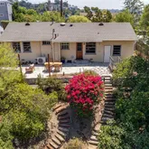 The spacious back...Perched above the neighborhood with hillside views, this tiny but mighty atomic ranch has been lovingly kept by the same family for over 40 years. Its vintage soul shows in the original hardwood floors and lattice-style windows, while the landscape feels like a sanctuary—two desert willows bursting pink in spring, a water-wise Australian willow for summer shade, a 50-year-old Meyer lemon heavy with fruit, and a mighty oak that’s grown from a volunteer sapling into the yard’s anchor.