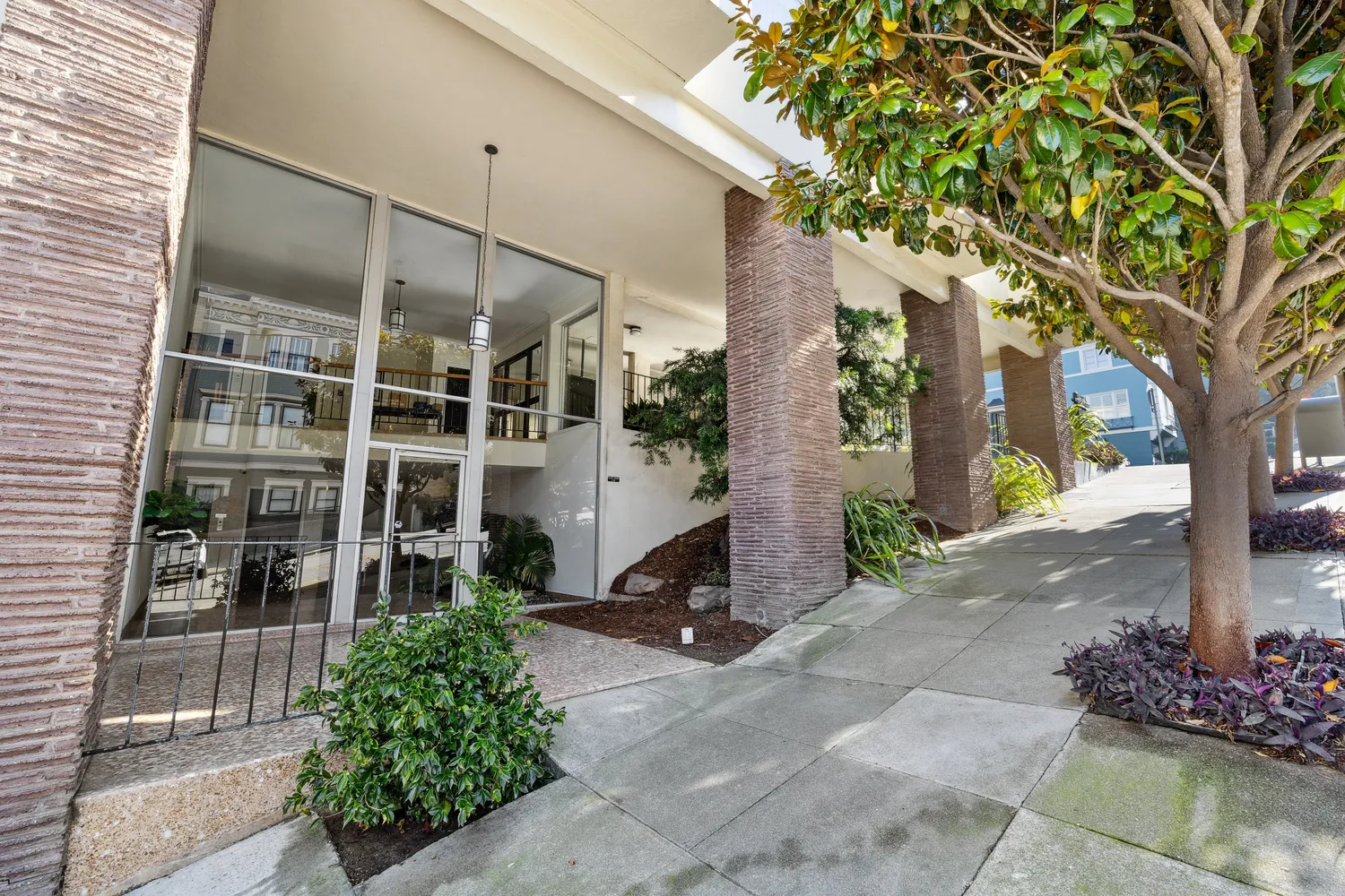 Chic and serene, this boutique mid-century elevator building is framed by a dramatic, wraparound porte cochere and perfectly perched atop Pacific Avenue. It is one of the few buildings in San Francisco to offer a covered driveway - convenient for Uber/Lyft pickups. A secure and attached garage and exceptional common amenities, including a beautiful and well-appointed HOA club room finish this wonderful home.