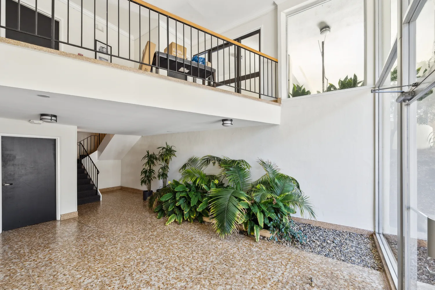 Chic and serene, this boutique mid-century elevator building is framed by a dramatic, wraparound porte cochere and perfectly perched...This light-filled 2 bedroom 2 bathroom condo with large windows and open floor plan has been freshly painted and is a great value!!