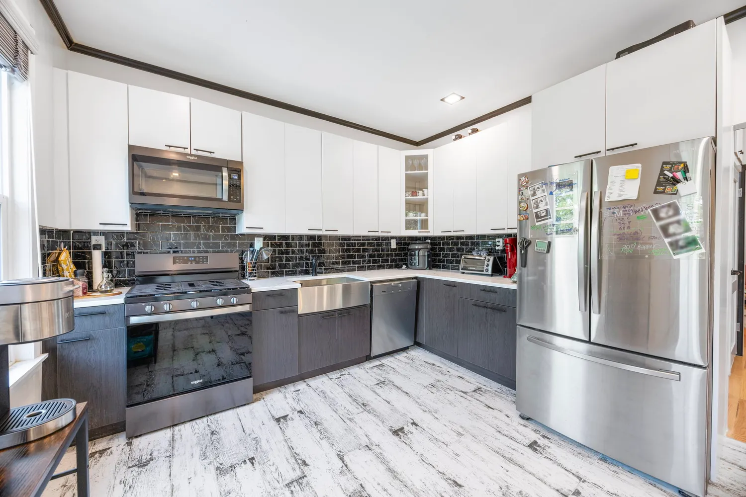 • Stainless steel appliances: refrigerator, stove, microwave, and dishwasher