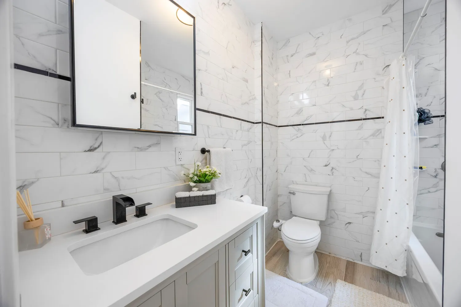 The second-floor unit is a spacious 2-bedroom apartment, also fully updated with a clean, modern aesthetic.